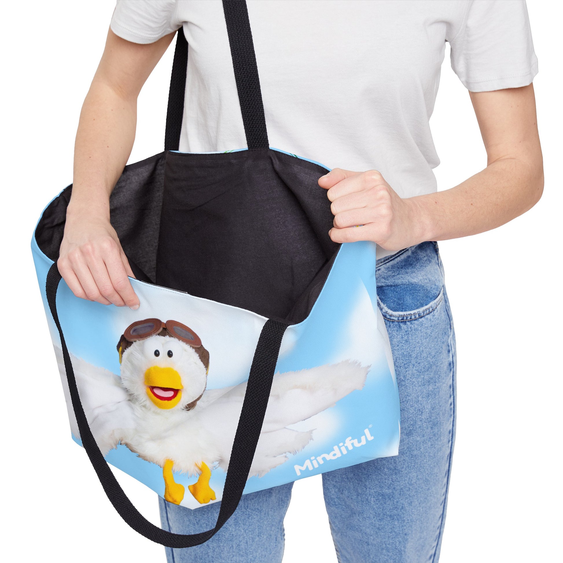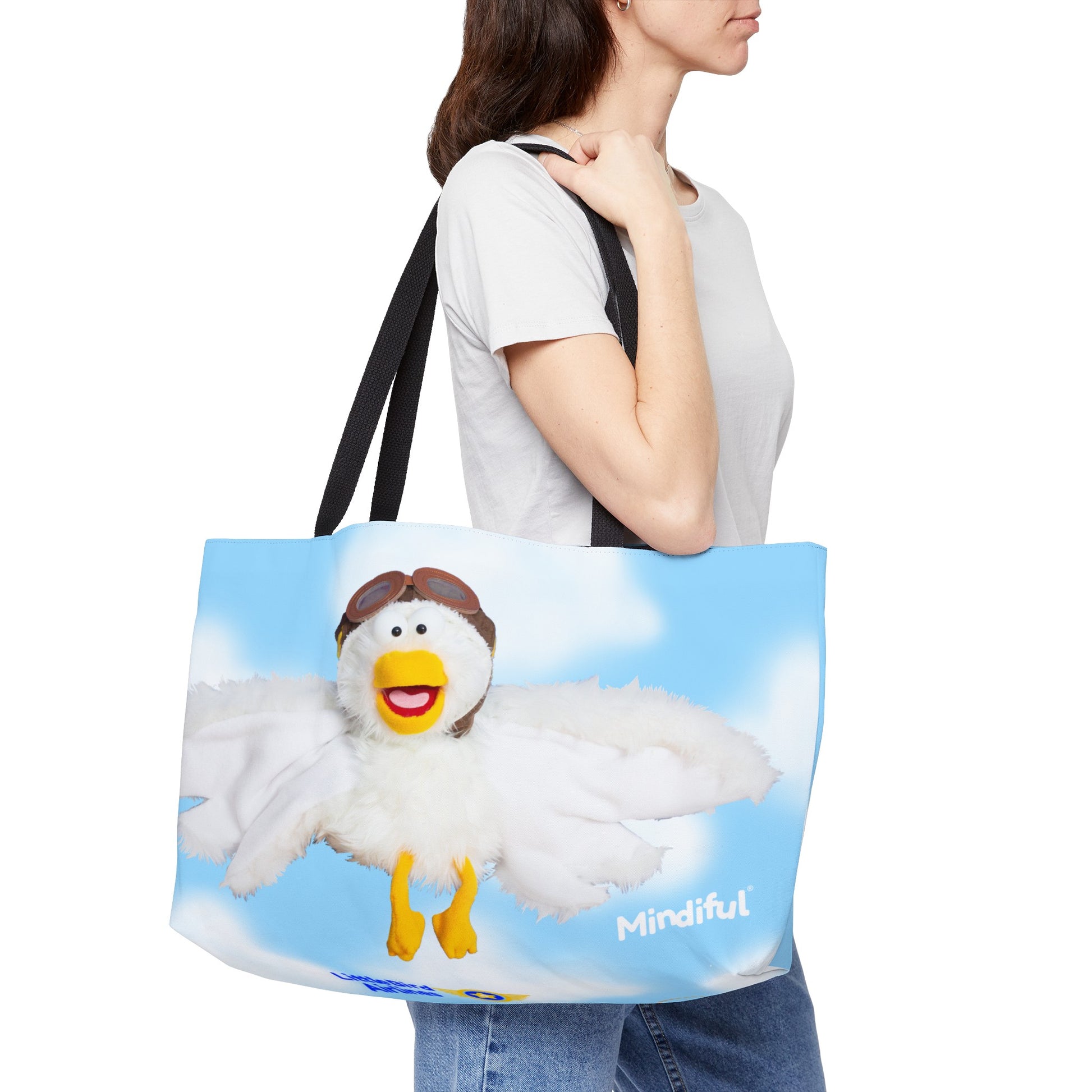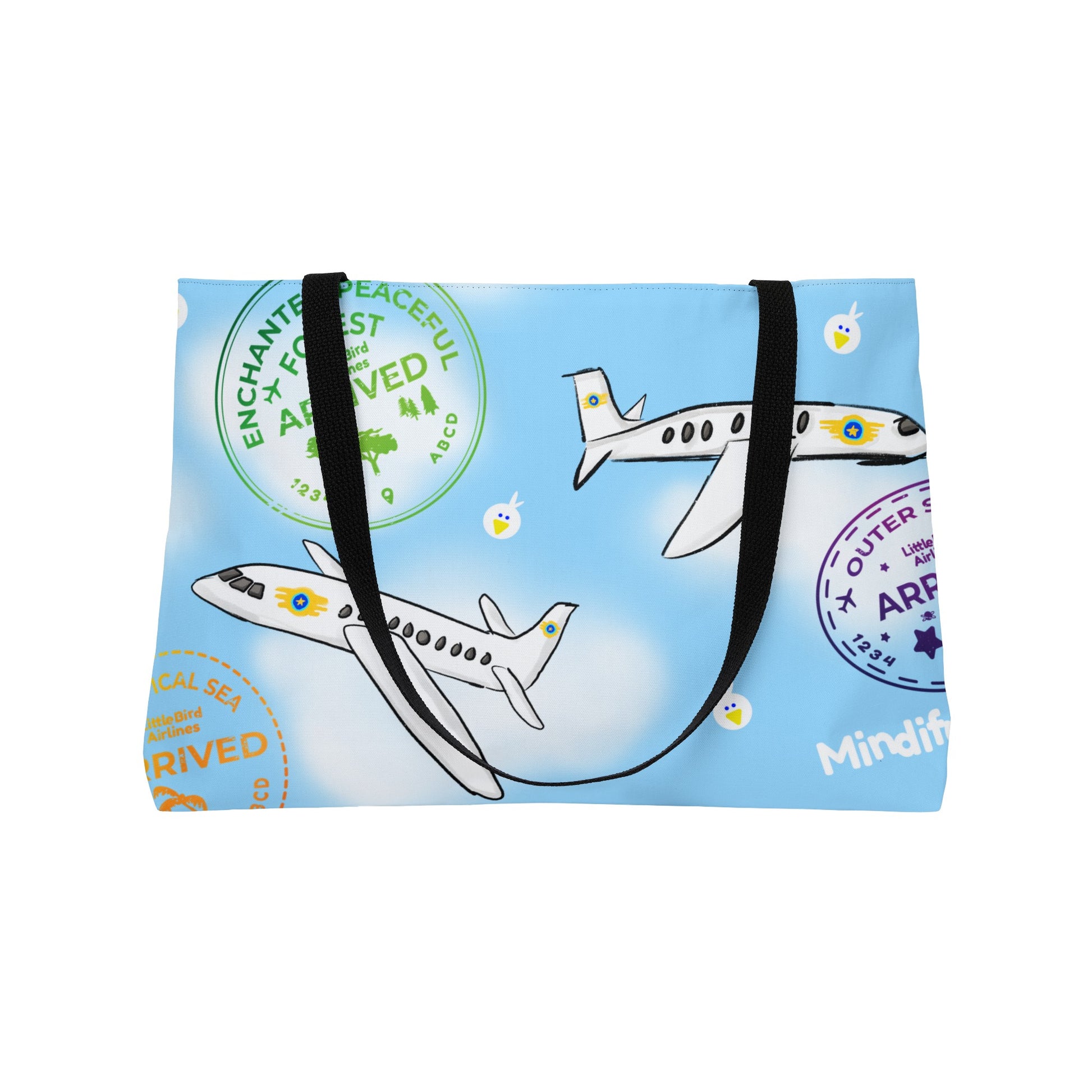 Bring Little Bird along for your travels! Be ready to explore the fuffy skies on a Breathing Break of your own with our Mindiful® Little Bird Airlines Weekender Tote Bag.